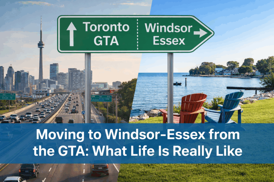 If you’re considering relocating from Toronto, Mississauga, Oakville, or the surrounding GTA communities, Windsor-Essex offers something many buyers feel they’ve lost in larger cities: space, affordability, waterfront living, and a strong sense of community.
